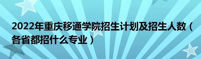大家好,小高來為大家解答以上問題。2022年重慶移通學(xué)院招生計劃及招生人數(shù),各省都招什么專業(yè)很多人還不知道,現(xiàn)在讓我們一起來看看吧!