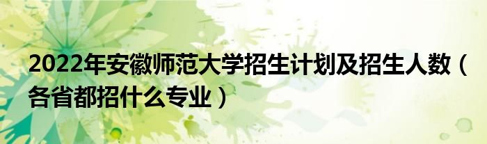大家好,小高來為大家解答以上問題。2022年安徽師范大學(xué)招生計(jì)劃及招生人數(shù),各省都招什么專業(yè)很多人還不知道,現(xiàn)在讓我們一起來看看吧!