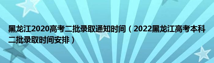 大家好,小高來為大家解答以上問題。黑龍江2020高考二批錄取通知時(shí)間,2022黑龍江高考本科二批錄取時(shí)間安排很多人還不知道,現(xiàn)在讓我們一起來看看吧!