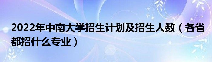 大家好,小高來為大家解答以上問題。2022年中南大學(xué)招生計劃及招生人數(shù),各省都招什么專業(yè)很多人還不知道,現(xiàn)在讓我們一起來看看吧!
