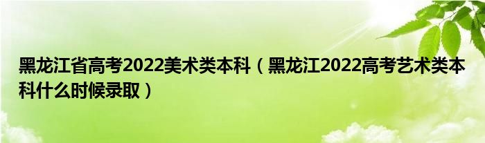 大家好,小高來為大家解答以上問題。黑龍江省高考2022美術(shù)類本科,黑龍江2022高考藝術(shù)類本科什么時(shí)候錄取很多人還不知道,現(xiàn)在讓我們一起來看看吧!