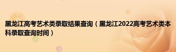 大家好,小高來為大家解答以上問題。黑龍江高考藝術(shù)類錄取結(jié)果查詢,黑龍江2022高考藝術(shù)類本科錄取查詢時(shí)間很多人還不知道,現(xiàn)在讓我們一起來看看吧!