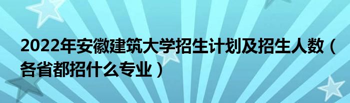 大家好,小高來為大家解答以上問題。2022年安徽建筑大學招生計劃及招生人數(shù),各省都招什么專業(yè)很多人還不知道,現(xiàn)在讓我們一起來看看吧!
