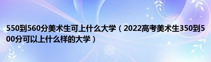 大家好,小高來為大家解答以上問題。550到560分美術生可上什么大學,2022高考美術生350到500分可以上什么樣的大學很多人還不知道,現(xiàn)在讓我們一起來看看吧!