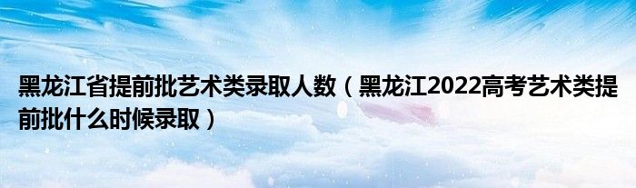 大家好,小高來為大家解答以上問題。黑龍江省提前批藝術(shù)類錄取人數(shù),黑龍江2022高考藝術(shù)類提前批什么時(shí)候錄取很多人還不知道,現(xiàn)在讓我們一起來看看吧!