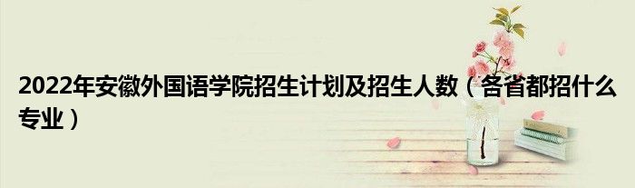 大家好,小高來(lái)為大家解答以上問題。2022年安徽外國(guó)語(yǔ)學(xué)院招生計(jì)劃及招生人數(shù),各省都招什么專業(yè)很多人還不知道,現(xiàn)在讓我們一起來(lái)看看吧!