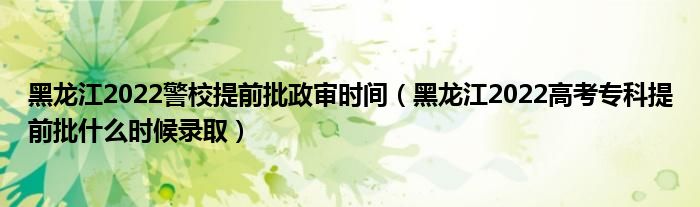 大家好,小高來為大家解答以上問題。黑龍江2022警校提前批政審時間,黑龍江2022高考??铺崆芭裁磿r候錄取很多人還不知道,現(xiàn)在讓我們一起來看看吧!