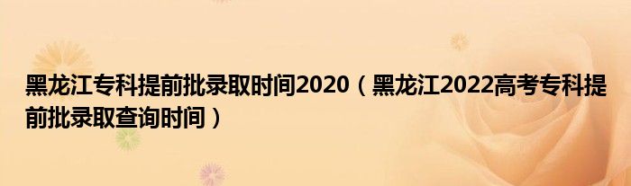 大家好,小高來(lái)為大家解答以上問(wèn)題。黑龍江專科提前批錄取時(shí)間2020,黑龍江2022高考??铺崆芭浫〔樵儠r(shí)間很多人還不知道,現(xiàn)在讓我們一起來(lái)看看吧!