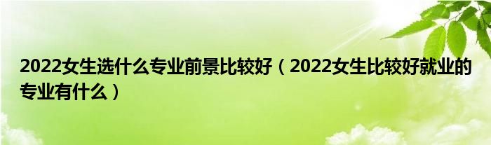 大家好,小高來為大家解答以上問題。2022女生選什么專業(yè)前景比較好,2022女生比較好就業(yè)的專業(yè)有什么很多人還不知道,現(xiàn)在讓我們一起來看看吧!