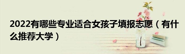 大家好,小高來(lái)為大家解答以上問(wèn)題。2022有哪些專業(yè)適合女孩子填報(bào)志愿,有什么推薦大學(xué)很多人還不知道,現(xiàn)在讓我們一起來(lái)看看吧!