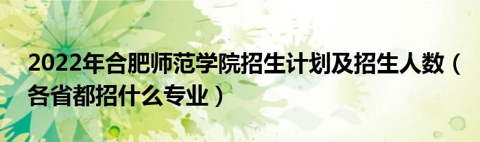 大家好,小高來為大家解答以上問題。2022年合肥師范學院招生計劃及招生人數(shù),各省都招什么專業(yè)很多人還不知道,現(xiàn)在讓我們一起來看看吧!