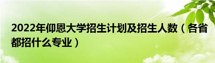 大家好,小高來為大家解答以上問題。2022年仰恩大學(xué)招生計(jì)劃及招生人數(shù),各省都招什么專業(yè)很多人還不知道,現(xiàn)在讓我們一起來看看吧!