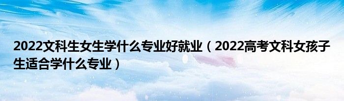 大家好,小高來(lái)為大家解答以上問(wèn)題。2022文科生女生學(xué)什么專(zhuān)業(yè)好就業(yè),2022高考文科女孩子生適合學(xué)什么專(zhuān)業(yè)很多人還不知道,現(xiàn)在讓我們一起來(lái)看看吧!