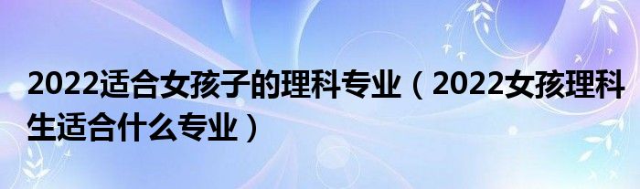 大家好,小高來(lái)為大家解答以上問(wèn)題。2022適合女孩子的理科專業(yè),2022女孩理科生適合什么專業(yè)很多人還不知道,現(xiàn)在讓我們一起來(lái)看看吧!