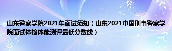 大家好,小高來(lái)為大家解答以上問(wèn)題。山東警察學(xué)院2021年面試須知,山東2021中國(guó)刑事警察學(xué)院面試體檢體能測(cè)評(píng)最低分?jǐn)?shù)線很多人還不知道,現(xiàn)在讓我們一起來(lái)看看吧!