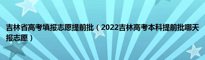 大家好,小高來為大家解答以上問題。吉林省高考填報(bào)志愿提前批,2022吉林高考本科提前批哪天報(bào)志愿很多人還不知道,現(xiàn)在讓我們一起來看看吧!