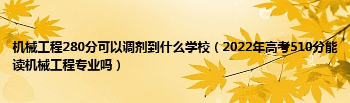 大家好,小高來為大家解答以上問題。機(jī)械工程280分可以調(diào)劑到什么學(xué)校,2022年高考510分能讀機(jī)械工程專業(yè)嗎很多人還不知道,現(xiàn)在讓我們一起來看看吧!