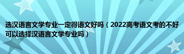 大家好,小高來為大家解答以上問題。選漢語言文學(xué)專業(yè)一定得語文好嗎,2022高考語文考的不好可以選擇漢語言文學(xué)專業(yè)嗎很多人還不知道,現(xiàn)在讓我們一起來看看吧!