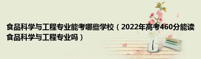 大家好,小高來為大家解答以上問題。食品科學與工程專業(yè)能考哪些學校,2022年高考460分能讀食品科學與工程專業(yè)嗎很多人還不知道,現(xiàn)在讓我們一起來看看吧!