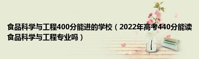 大家好,小高來為大家解答以上問題。食品科學(xué)與工程400分能進(jìn)的學(xué)校,2022年高考440分能讀食品科學(xué)與工程專業(yè)嗎很多人還不知道,現(xiàn)在讓我們一起來看看吧!