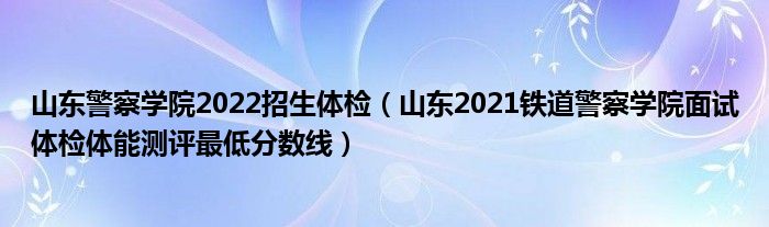 大家好,小高來(lái)為大家解答以上問(wèn)題。山東警察學(xué)院2022招生體檢,山東2021鐵道警察學(xué)院面試體檢體能測(cè)評(píng)最低分?jǐn)?shù)線很多人還不知道,現(xiàn)在讓我們一起來(lái)看看吧!