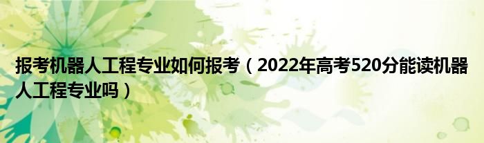 大家好,小高來為大家解答以上問題。報(bào)考機(jī)器人工程專業(yè)如何報(bào)考,2022年高考520分能讀機(jī)器人工程專業(yè)嗎很多人還不知道,現(xiàn)在讓我們一起來看看吧!