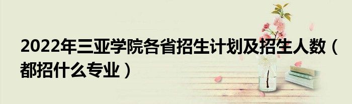 大家好,小高來為大家解答以上問題。2022年三亞學(xué)院各省招生計劃及招生人數(shù),都招什么專業(yè)很多人還不知道,現(xiàn)在讓我們一起來看看吧!