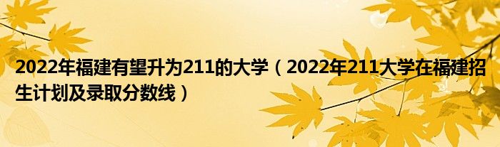 大家好,小高來為大家解答以上問題。2022年福建有望升為211的大學,2022年211大學在福建招生計劃及錄取分數(shù)線很多人還不知道,現(xiàn)在讓我們一起來看看吧!