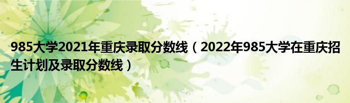 大家好,小高來(lái)為大家解答以上問(wèn)題。985大學(xué)2021年重慶錄取分?jǐn)?shù)線,2022年985大學(xué)在重慶招生計(jì)劃及錄取分?jǐn)?shù)線很多人還不知道,現(xiàn)在讓我們一起來(lái)看看吧!