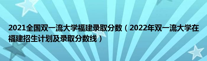 大家好,小高來為大家解答以上問題。2021全國雙一流大學(xué)福建錄取分?jǐn)?shù),2022年雙一流大學(xué)在福建招生計劃及錄取分?jǐn)?shù)線很多人還不知道,現(xiàn)在讓我們一起來看看吧!