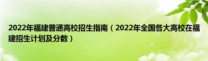 大家好,小高來為大家解答以上問題。2022年福建普通高校招生指南,2022年全國各大高校在福建招生計劃及分數(shù)很多人還不知道,現(xiàn)在讓我們一起來看看吧!