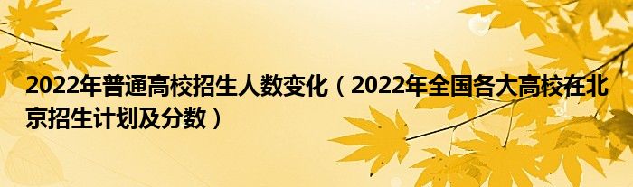 大家好,小高來(lái)為大家解答以上問(wèn)題。2022年普通高校招生人數(shù)變化,2022年全國(guó)各大高校在北京招生計(jì)劃及分?jǐn)?shù)很多人還不知道,現(xiàn)在讓我們一起來(lái)看看吧!