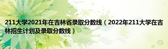 大家好,小高來(lái)為大家解答以上問(wèn)題。211大學(xué)2021年在吉林省錄取分?jǐn)?shù)線,2022年211大學(xué)在吉林招生計(jì)劃及錄取分?jǐn)?shù)線很多人還不知道,現(xiàn)在讓我們一起來(lái)看看吧!