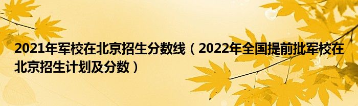 大家好,小高來為大家解答以上問題。2021年軍校在北京招生分數(shù)線,2022年全國提前批軍校在北京招生計劃及分數(shù)很多人還不知道,現(xiàn)在讓我們一起來看看吧!