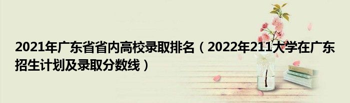 大家好,小高來為大家解答以上問題。2021年廣東省省內(nèi)高校錄取排名,2022年211大學(xué)在廣東招生計(jì)劃及錄取分?jǐn)?shù)線很多人還不知道,現(xiàn)在讓我們一起來看看吧!