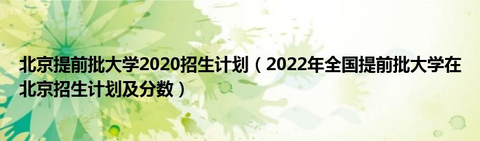 大家好,小高來為大家解答以上問題。北京提前批大學2020招生計劃,2022年全國提前批大學在北京招生計劃及分數(shù)很多人還不知道,現(xiàn)在讓我們一起來看看吧!