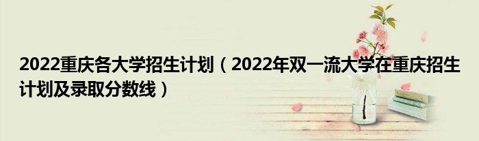 大家好,小高來(lái)為大家解答以上問(wèn)題。2022重慶各大學(xué)招生計(jì)劃,2022年雙一流大學(xué)在重慶招生計(jì)劃及錄取分?jǐn)?shù)線很多人還不知道,現(xiàn)在讓我們一起來(lái)看看吧!