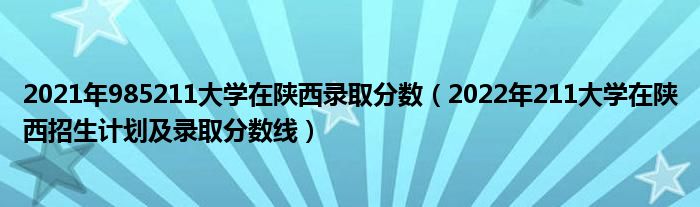 大家好,小高來(lái)為大家解答以上問(wèn)題。2021年985211大學(xué)在陜西錄取分?jǐn)?shù),2022年211大學(xué)在陜西招生計(jì)劃及錄取分?jǐn)?shù)線很多人還不知道,現(xiàn)在讓我們一起來(lái)看看吧!