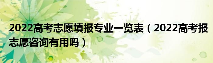 大家好,小高來(lái)為大家解答以上問(wèn)題。2022高考志愿填報(bào)專(zhuān)業(yè)一覽表,2022高考報(bào)志愿咨詢有用嗎很多人還不知道,現(xiàn)在讓我們一起來(lái)看看吧!
