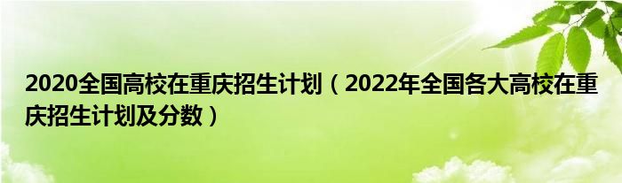 大家好,小高來為大家解答以上問題。2020全國高校在重慶招生計(jì)劃,2022年全國各大高校在重慶招生計(jì)劃及分?jǐn)?shù)很多人還不知道,現(xiàn)在讓我們一起來看看吧!