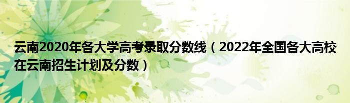 大家好,小高來為大家解答以上問題。云南2020年各大學(xué)高考錄取分?jǐn)?shù)線,2022年全國各大高校在云南招生計(jì)劃及分?jǐn)?shù)很多人還不知道,現(xiàn)在讓我們一起來看看吧!