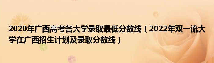 大家好,小高來為大家解答以上問題。2020年廣西高考各大學(xué)錄取最低分數(shù)線,2022年雙一流大學(xué)在廣西招生計劃及錄取分數(shù)線很多人還不知道,現(xiàn)在讓我們一起來看看吧!