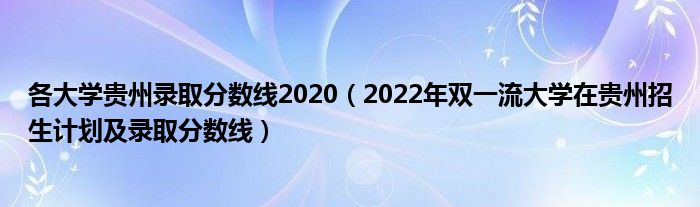 大家好,小高來(lái)為大家解答以上問(wèn)題。各大學(xué)貴州錄取分?jǐn)?shù)線2020,2022年雙一流大學(xué)在貴州招生計(jì)劃及錄取分?jǐn)?shù)線很多人還不知道,現(xiàn)在讓我們一起來(lái)看看吧!