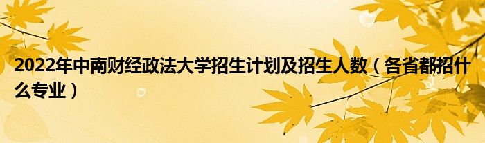 大家好,小高來為大家解答以上問題。2022年中南財經(jīng)政法大學(xué)招生計劃及招生人數(shù),各省都招什么專業(yè)很多人還不知道,現(xiàn)在讓我們一起來看看吧!