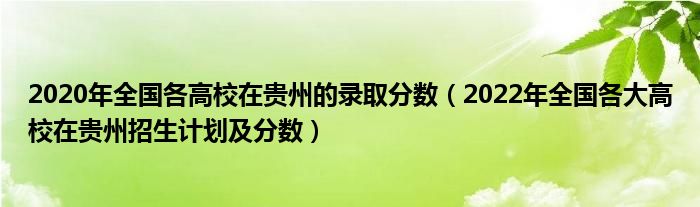 大家好,小高來為大家解答以上問題。2020年全國各高校在貴州的錄取分?jǐn)?shù),2022年全國各大高校在貴州招生計劃及分?jǐn)?shù)很多人還不知道,現(xiàn)在讓我們一起來看看吧!