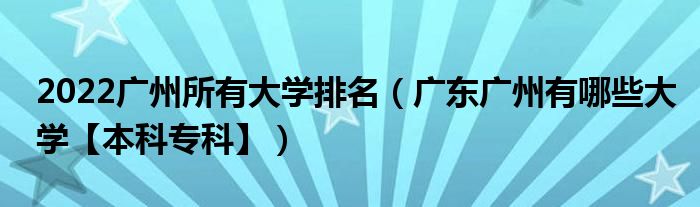 大家好,小高來為大家解答以上問題。2022廣州所有大學(xué)排名,廣東廣州有哪些大學(xué)【本科專科】很多人還不知道,現(xiàn)在讓我們一起來看看吧!