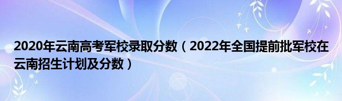大家好,小高來為大家解答以上問題。2020年云南高考軍校錄取分?jǐn)?shù),2022年全國(guó)提前批軍校在云南招生計(jì)劃及分?jǐn)?shù)很多人還不知道,現(xiàn)在讓我們一起來看看吧!