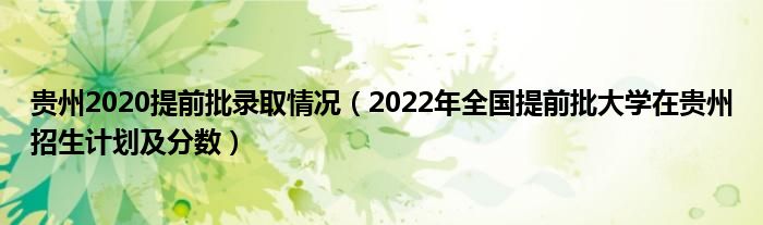 大家好,小高來為大家解答以上問題。貴州2020提前批錄取情況,2022年全國提前批大學在貴州招生計劃及分數(shù)很多人還不知道,現(xiàn)在讓我們一起來看看吧!