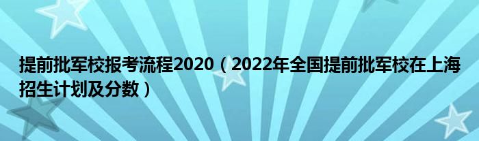 大家好,小高來為大家解答以上問題。提前批軍校報(bào)考流程2020,2022年全國提前批軍校在上海招生計(jì)劃及分?jǐn)?shù)很多人還不知道,現(xiàn)在讓我們一起來看看吧!