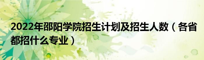 大家好,小高來為大家解答以上問題。2022年邵陽學(xué)院招生計(jì)劃及招生人數(shù),各省都招什么專業(yè)很多人還不知道,現(xiàn)在讓我們一起來看看吧!